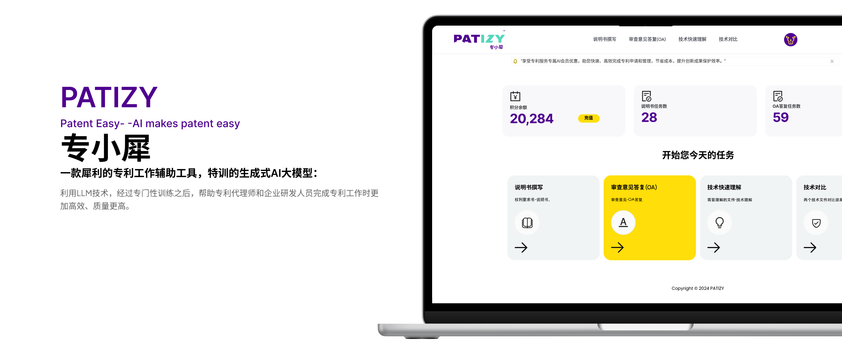 专小犀是专门为专利代理师量身打造的一个超级助手,我们首先解决专利代理师工作中耗时多附加值低的工作;所以我们首先提供了OA答复(审查意见答复)功能,它能快速高效准确的为您找到案件答复的要点,经过您的二次确认修改之后可以自动完成意见陈述工作;其次我们的说明书撰写是要建立在代理师布局的权利要求上,确保案件符合代理师的思考,让代理师的精力可以聚焦在更有价值的权利要求工作上;另外还提供了两个神器,帮助代理师节省大量的文件阅读分析时间;所以说本工具是帮助代理师一起高效高质量完成工作的超级助手,而不是AI代理师。